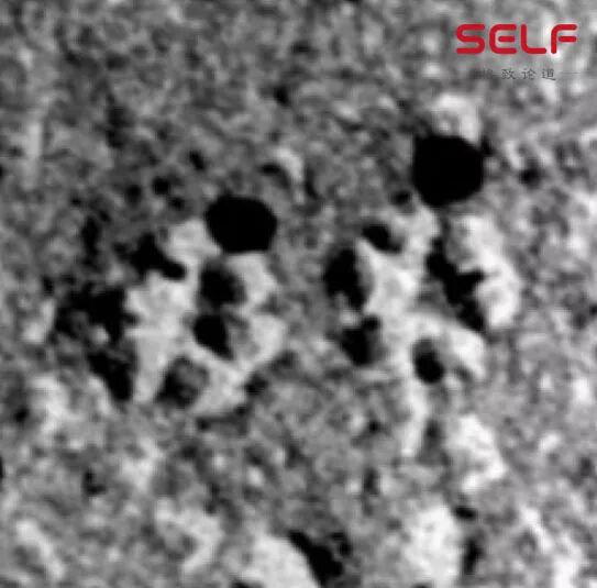 这幅图,可以看到在植物细胞膜上有一些六边形的小颗粒,非常规则。后来人们发现,这些小颗粒上面都带有纤维素的痕迹,所以人们认为它是合成纤维素的一种酶,就把它叫做纤维素合酶。后来更深入研究发现这种所谓的纤维素和酶,是由24或者36个蛋白质组成的一个非常大的分子机器,后来叫做纤维素合酶复合体。
