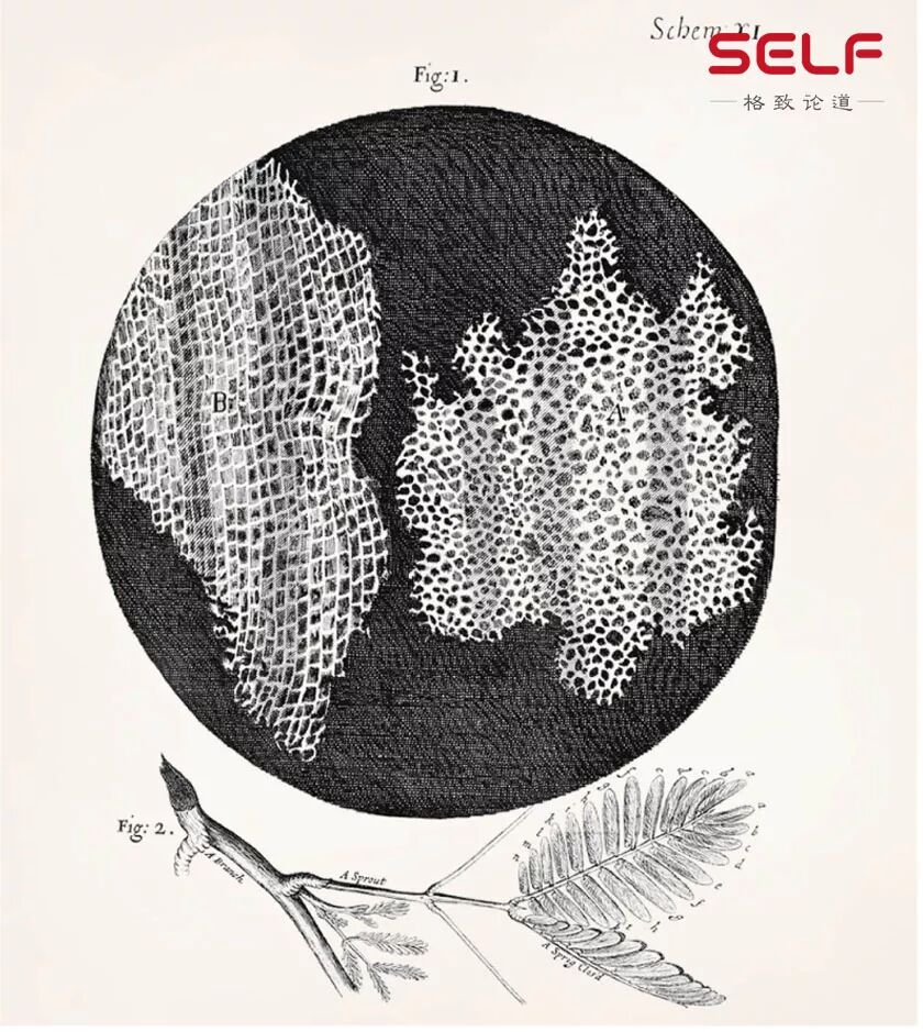 想起来了上面这幅图,学过生物学的人肯定对这幅图有深刻的印象。这幅图是1665年英国科学家罗伯特· 胡克,用显微镜所描述的植物细胞。细胞 cell 这个词就是从这来的。