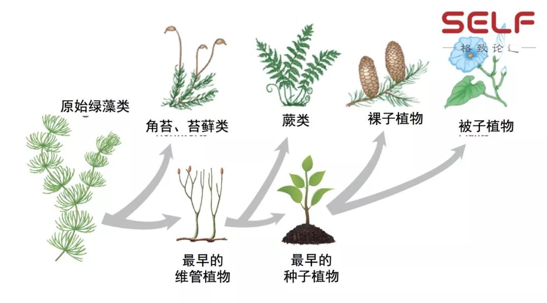 如果回顾整个植物演化的历史,可以看到植物是经历了一个由水到陆的过程。大约在6亿年前,植物都是在水里面的,包括现在的各种藻类。但是现在很多藻类它已经不是植物了,包括蓝藻,褐藻,吃的海带,它们现在不算植物。