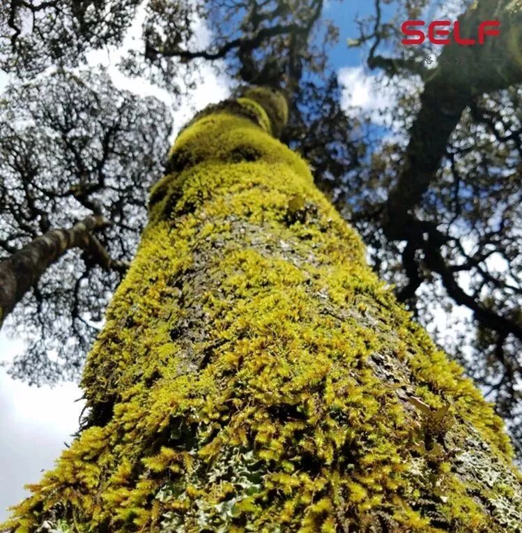 是不是高山上的植物都长这么低?其实也不是,同样也是在云南。这是一棵很高大的栎树,大概有20多米高。大家仔细看这棵树的树皮上有一些什么东西?