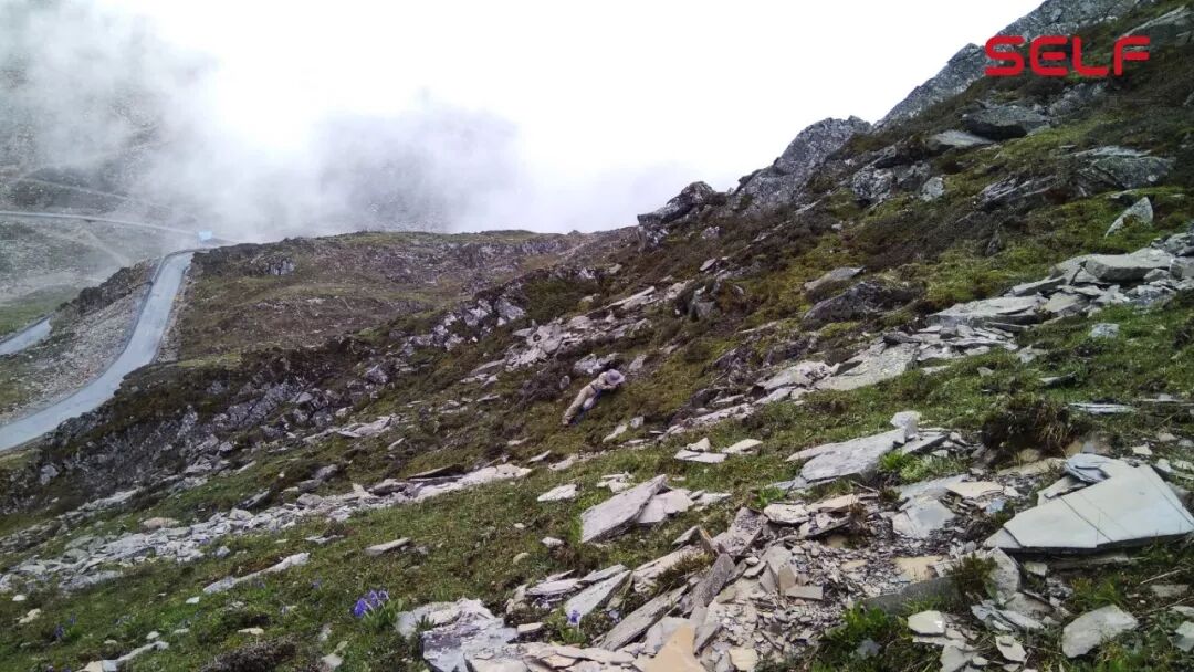 大家能找到我吗?非常小。我们拍植物的人如果到了山地,特别是这种高山,海拔4300米的,在那边拍植物,不是站着拍的,都是趴在那拍的。