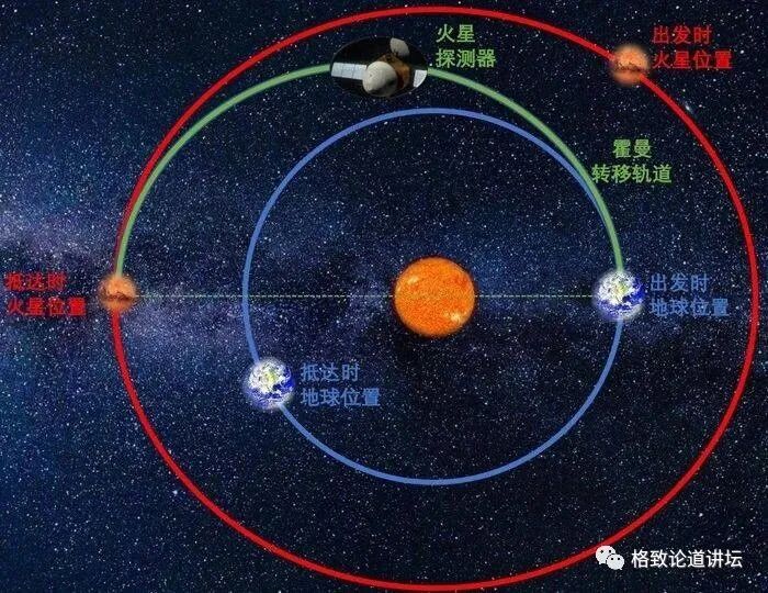 ▲ 火星探测霍曼转移轨迹示意图(图源:中国国家航天局)