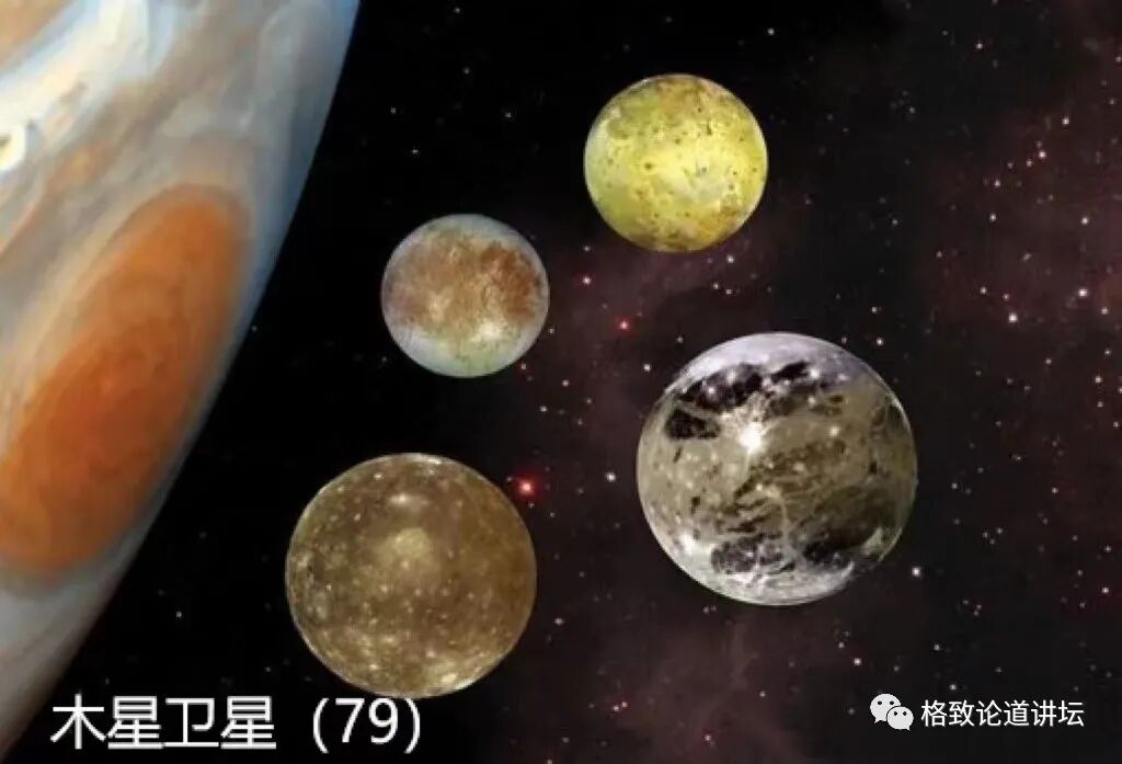 那4个大行星的卫星很多,像木星有79个月亮,大概木卫二它表面是冰,冰底下有海洋,海洋里面有火山,有可能繁育生命,但是现在没有找到任何证据。