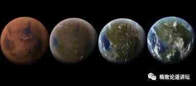 ▲ 红色火星将逐步被改造成绿色火星、蓝色火星