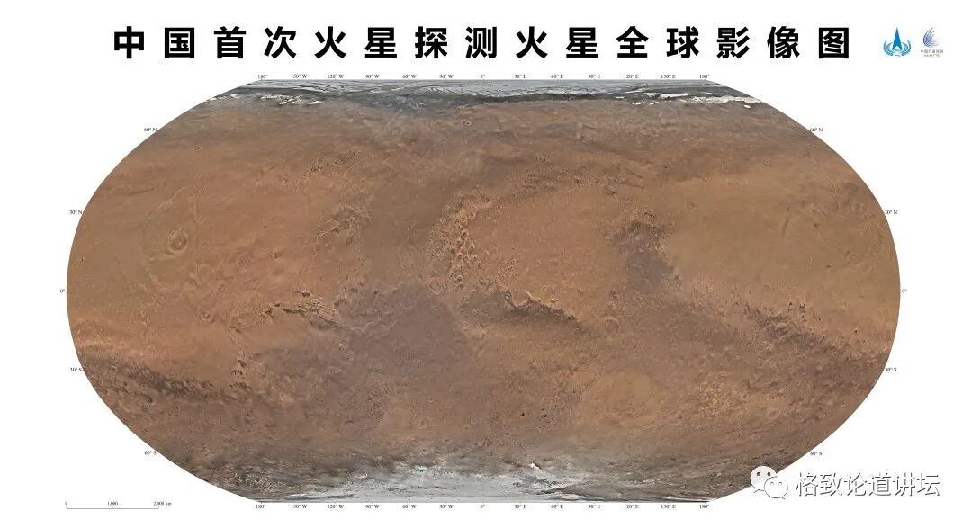 ▲ 国家航天局、中国科学院联合发布的中国首次火星探测火星全球彩色影像图