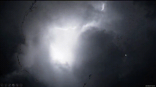 结果你猜怎么着,在我们回到杭州下飞机的当天下午,我们刚散会10多分钟,大家取完行李,我打了一个出租车到萧山机场的3楼。在一出门准备上车的时候,我就感觉不对劲。怎么不对劲呢?太闷热了。我就打开了手机,看了一眼当时的卫星云图,突然发现在浙江西部,一串非常猛烈的风暴系统爆发了,并且向杭州地区直扑而来。我立即给TIM他们打电话说:“可能有风暴要来了,你们做好准备,今天还能再拍一场。”结果当天晚上,他们的确在TIM家的阳台拍起来了。