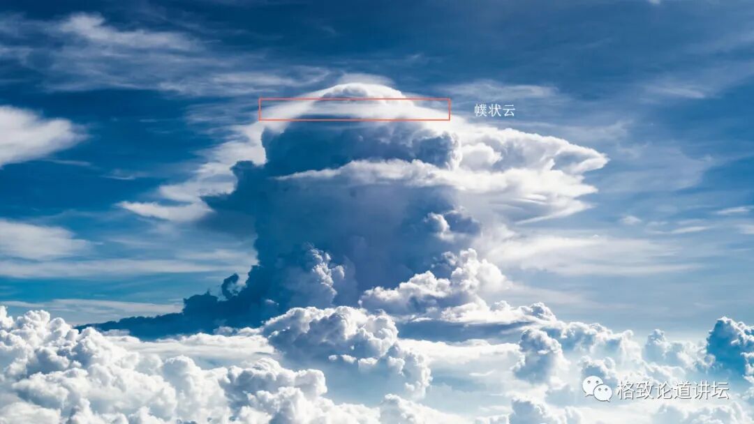 如果时间再晚一点,当太阳角度比较低的时候,夕阳的金光就会洒到这些高大的云体上,可能会形成火烧积云的景观。同时如果还有幞状云的话,你就会发现还真挺奇妙的,就像顶了一个帽子一样。不过它下方都是猛烈的狂风暴雨。
