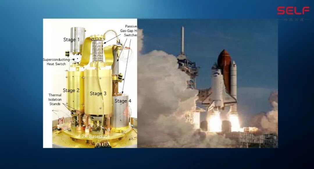 左边是美国做的一个磁制冷的设备,它能够达到50毫K,也就是说在1K以下50毫K这样的一个温度,可以用在空间的望远镜上面。