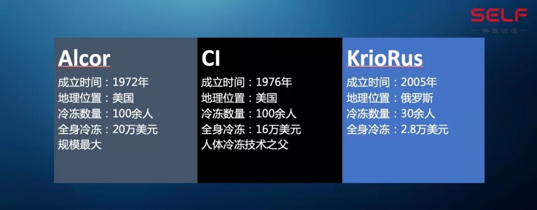 但是可以告诉大家,现在甭管是Alcor还是俄罗斯的(KrioRus),只是做遗体的保存。你想把活着的自己冻上二十年,然后再复活现在我们的技术是达不到的。
