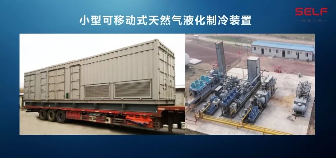 我们就是想了一个方式,用什么呢?做一个小型的液化天然气设备,类似于这样的 ,就像一个集装箱的大小,我们用非常好的流程设计,使得它整个非常紧凑。有一些同学可能打游戏,比如说红警还有什么星际啊,虽然我都没玩过。像游戏里的主基地一样,在这个地方采气,采气把它液化成液体,然后采完了以后再到另外一个地方采,这样都变了我的资源。