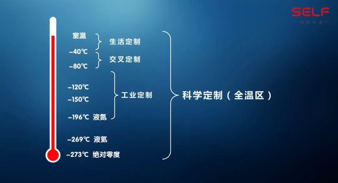 可以看到这是一个温度计,从室温到最低是零下273.15度,也就是我们的绝对零度,在整个这样的温区内,我们的工作就是定制你想要的温度。你想要一个什么样的温度,我们就做这样一个温度提供给你,这就是我的工作。