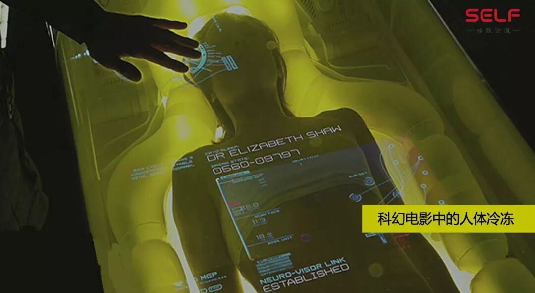 这个图片是很多科幻电影里都会出现的场景,有一个非常漂亮的棺,一个美女躺进去,之后再飞行几百年,再出来还是美女。有没有人想把自己冻起来?如果有,来找我,我可以把你冻起来。