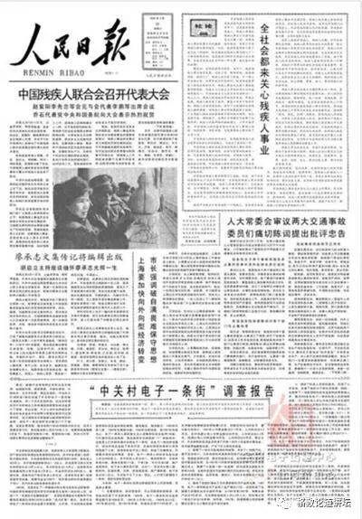一个是在1988年3月,《人民日报》的头版登了一个调查报告,这个报告是“中关村电子一条街调查报告”,这是当时中办牵头的一个中关村联合调查组的调查报告。这个报告写的非常好,大约有4个部分,它首先把中关村这里所产生的现象、它的所作所为详细进行了描述,是很激动人心的。