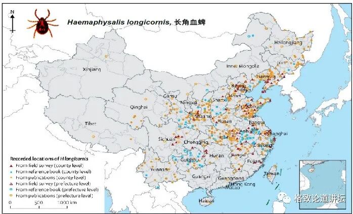 这个蜱有一个很重要的特点,它除了有性生殖之外,还有一个孤雌生殖的种群。有性生殖我们可以理解是有爸爸、有妈妈,而孤雌种群只有妈妈,它自己会产卵,然后产生一个新种群。孤雌种群最先是在日本北部发现的,咱们国家实际上只在少数地区像甘肃、四川、上海有过报道,另外在美国、新西兰这些地方发现的全都是孤雌的。