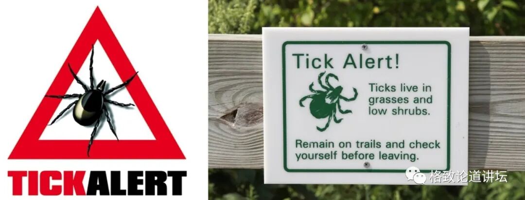 但是我们也发现,当地很多公园都有这个标志——小心蜱虫。因为在美国蜱虫非常多,而且很多会携带一些传染病,像莱姆病,导致那边莱姆病的病例非常多。