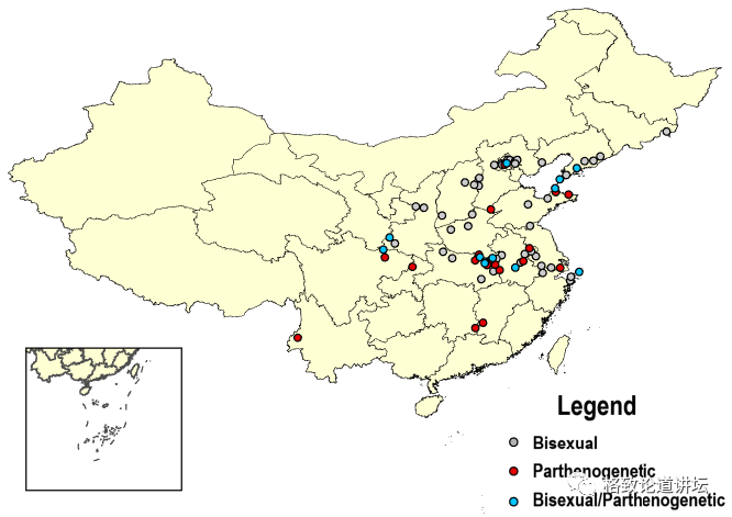 另外我们也发现,实际上两性繁殖的虫子跟孤雌的虫子它们的遗传多样性非常相近,这也超过我们的预计。另外我们还计算了一下这两个种群的扩散速度,发现孤雌种群的扩散速度是两性种群的2.3倍,比它快得多。