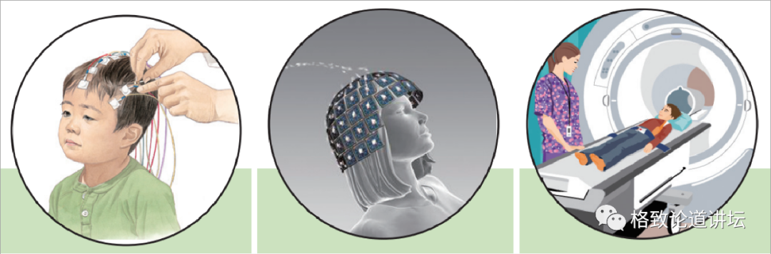最开始我介绍了疼痛产生于大脑,没有大脑就没有疼痛。所以是不是可以通过记录疼痛状态下的大脑活动信号来反演疼痛呢?现在确实有非常多的非侵入式记录大脑响应的技术,比如脑电、脑磁和功能磁成像,它们都能记录大脑的神经信号。