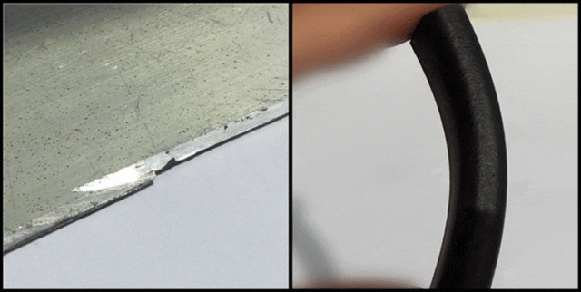 什么是韧性呢?我给大家举两个例子。汽车轮胎是用橡胶做的,橡胶是一种韧性的材料。橡胶表面可能会出现一些裂纹,但是橡胶阻碍裂纹扩展的能力还是非常强的,所以裂纹的扩展速率非常慢。然而橡胶的强度很低,我们轻轻一捏,橡胶就发生变形了,因此它的承载能力不行。