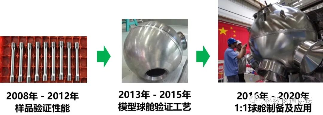 同时,我们也联合国内其他一些具有技术优势的团队,包括设计单位是中船702所,应用单位是中国科学院深海所,建设单位包括中国科学院金属所、宝钛股份、中船725所,还有航空制造院以及中国科学院深海所,正是集全国之力才攻克了一系列这样的困难,最终实现了载人舱建造。