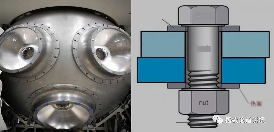我们再反过头来看,同期美国载人潜水器的载人舱是采用什么方法进行合拢的?它并未采用焊接,而采用的是螺栓的连接。为什么呢?