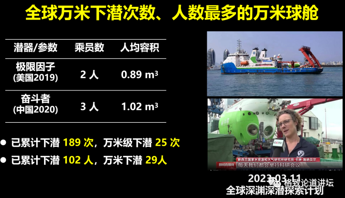 “奋斗者”号海试成功之后,目前也正在继续开展常规科考。目前载人舱已经支撑“奋斗者”号实现了25次万米下潜,我们国家已经成为全球万米下潜次数和人数最多的国家。