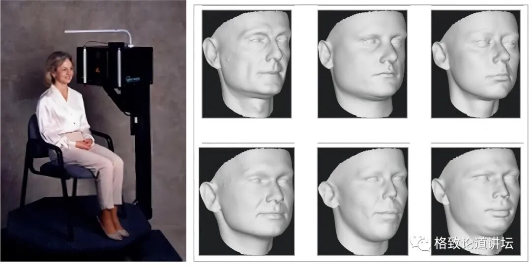 三维人脸模型是这么构建的:我们找来一个三维的扫描仪,然后再找来男男女女、老老少少200个人,尽可能覆盖更多的脸形变化。然后扫描出他们的三维人脸,再进行点对点的配准,再经过一些数理统计的办法,就能得到这个三维人脸模型。