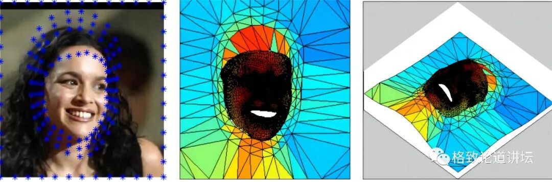 那么反过来,如果我们能够生成一张图像对应的三维人脸结构,再基于这个三维结构进行姿态和表情的校正,这个工作就变得非常直接和可靠。分析到这里,我和李老师就确定了这个技术路线。