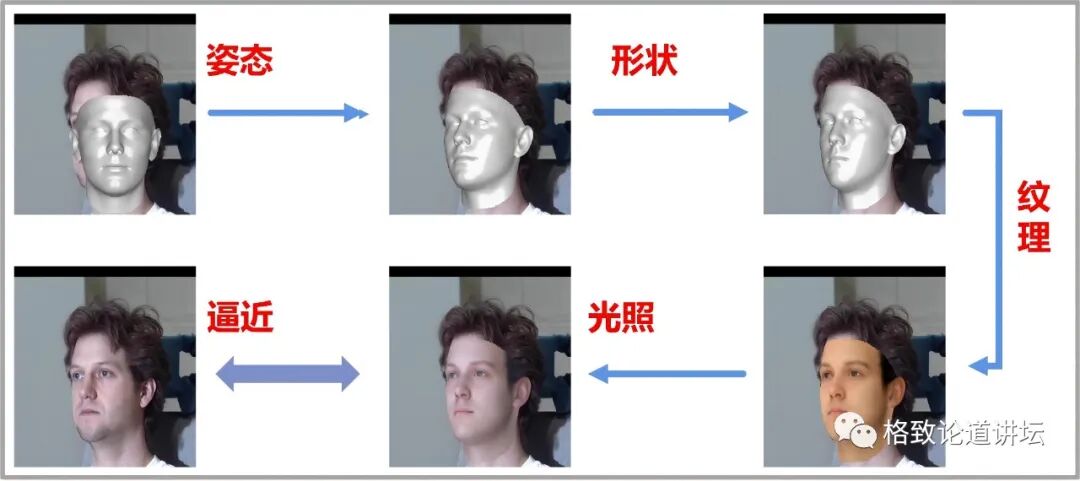▲ 用三维人脸模拟一张人脸图像的生成过程