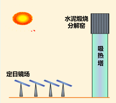 前面提到了聚光镜,这张图显示的就是通过聚光镜聚光产生高温的热,以此来烧水泥,烧出来的水泥质量也非常好。