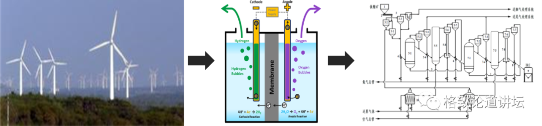 ▲ 光伏/风电→电解水制氢→流化床氢气炼铁