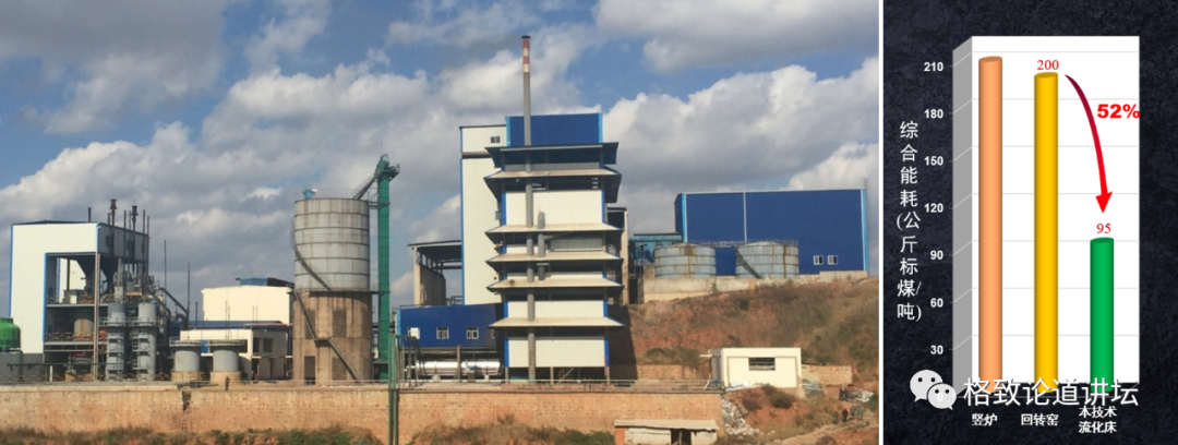 我们建立的这些方法也在工业上得到了应用。左边这张图是我们在云南文山建立的20万吨级的锰矿还原情况。从右边这张图中可以看出,通过这些理论跟方法,与传统方式相比,我们大概可以降低52%的能耗、成本也能降低50%以上。这个工厂目前已经运行了七八年,企业取得了非常好的经济效益。