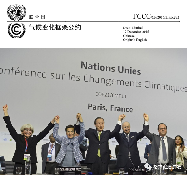 ▲ 巴黎协定:全球温升控制在2℃以内,努力控制在1.5℃以内