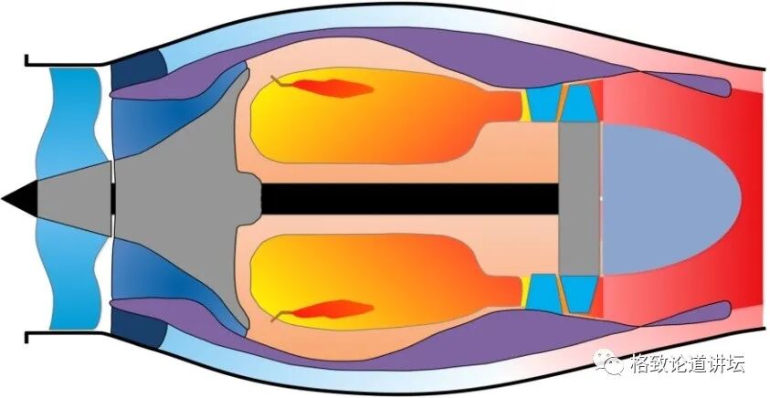 这样做了以后,基本上靠高压直驱的风扇就可以实现这个技术。然后在这个技术的基础上,单轴涡扇就成了。