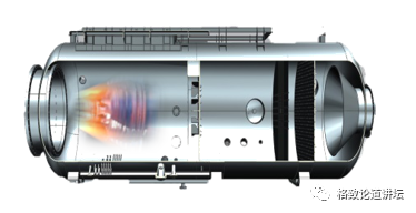 面对第二个挑战,我们发明了热射流点火和轴向分级分区组合的燃烧技术,从而做到了加力燃烧时能够稳定地点火。大家可以看到,发动机前面是一个锥形段,这个锥形段可以预热燃油,让它雾化,从而在空中实现快速点火,同时在一个很短的时长内实现充分燃烧。