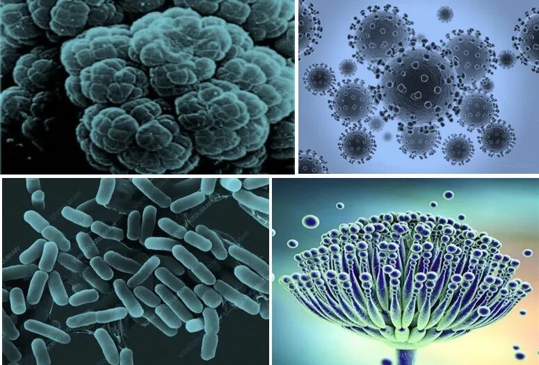 下左:革兰氏阴性菌 下中:革兰氏阳性菌 下右:真菌