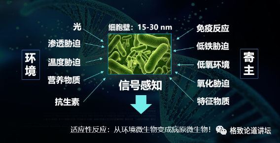 大家都知道,对于细菌来说,人实际上是最好的一种培养基,唯一不好的地方就是人有免疫系统,会对细菌进行攻击。哪里有压迫,哪里就有反抗。人要攻击细菌的时候,细菌一定会感知免疫反应,为了生存,它也会对人类或者植物发起进攻。这就是一个细菌“由好变坏”的过程,而这个过程中最核心的部分就是感知到外界信号的不利刺激。
