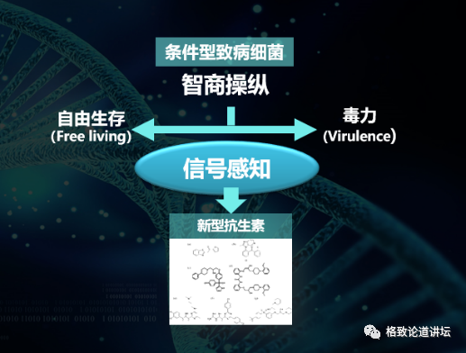 我们已经知道,一个环境微生物进入到人体变成病原微生物是因为感知,那么我们能不能发展新型的化合物来控制细菌的智商,迷惑它、干扰它,让它知道自己现在还是生活在环境里面,不要去对人或者植物产生伤害。那么这样的化合物毫无疑问就会变成创新性的抗生素。正是因为这样,我实验室现在除了研究细菌和植物的相互作用以外,还在研究细菌怎么和其他细菌相互作用。