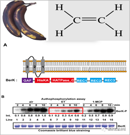 刚才提到的都是一些化合物,那么细菌能不能像人一样感知到气体的存在呢?答案显然是一样的。大家都吃过香蕉,也买香蕉。很多香蕉买回来的时候是绿色的,放上一段时间、捂一捂就变成黄色的熟香蕉了。为什么?因为植物激素乙烯能促进植物的成熟和衰老,那么乙烯能不能被细菌感知呢?