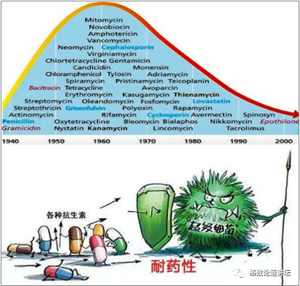 ▲ 上:抗生素的发现 下:细菌耐药性进化