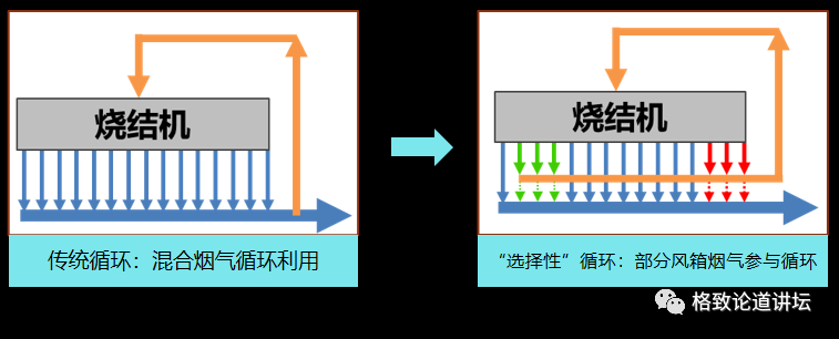具体来说,我们做的事就是研究怎么把烧结机的烟气量降下来。传统的方式就是先把风箱的烟气统一抽出,然后使一部分烟气循环回烧结台车表面,替代一部分空气,实现循环利用,从而减少部分烟气排放。