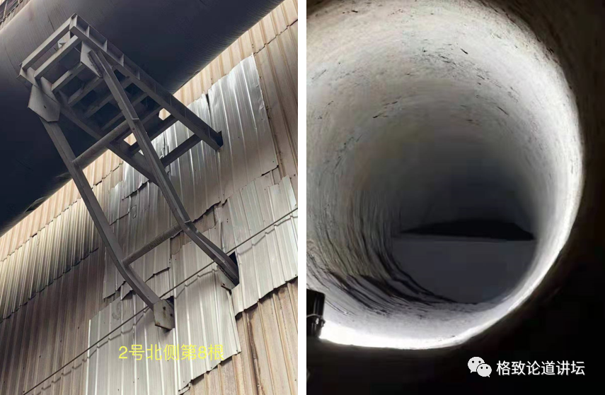 右:烟道积灰