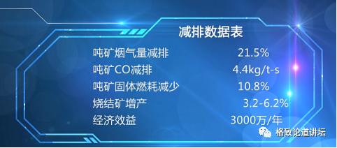 给大家汇报一下我们在邯钢做的首台套选择性烟气循环示范工程的运行效果。可以看到,整个效果非常好。一个是烟气量有明显的减少。烟气量减少以后,相对应的污染物排放总量就有显著下降,大概能下降20%。吨矿的一氧化碳排放量也有所下降,固体燃耗也相应减少,烧结矿实现了增产,经济效益超过了3000万/年,而我们对360平米烧结机的投资才仅仅4000万。可以说,这个装置运行以后同时具备了优秀的经济性和污染减排能力,所以获得了很多的认可。
