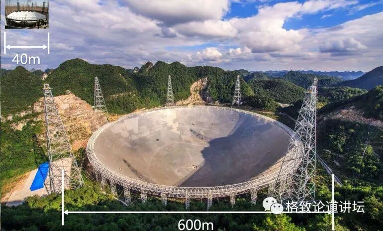 但是也有人问,说要建比阿雷西博还大的望远镜,还要比它的灵敏度更高,那它的口径都305米了,你这怎么就倒退到300米了呢?这是因为我们用的是抛物面天线,能更好地去汇聚这些信号,所以即使我们的尺寸跟它相当,灵敏度却是它的3倍。这也是为什么FAST在建成之后,可以那么快得到那么多的重要成果。