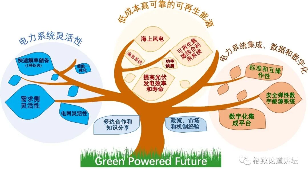 在2021年的格拉斯哥第26届气侯变化大会上,我们还提出了绿色电力未来使命的技术路线图,明确给出应对未来零碳电力挑战有三个关键技术方向:可再生能源、电力系统的灵活性以及电力系统的集成和数字化。这个路线图还包括17个主题,100多个创新优先事项,是一个非常庞大的技术体系,也是重大的技术挑战。