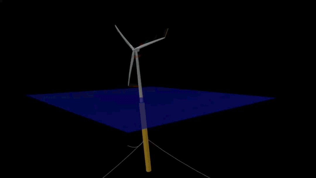 我们结合了直升机的旋转理论和这个原理,把它们应用到漂浮式风电机组上。