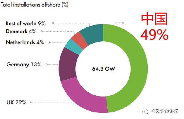 截止到2022年,中国的海上风力发电装机总量已经超过了英国,成为全球第一,约占全球海上风电装机总量的49%,将近一半。