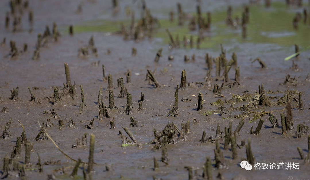 A家势力强,地盘大,日子过得也挺好。但天有不测风云,27日这天早上我到那儿一看,哎呀,水位怎么下降得这么厉害,A家所处的位置都露出塘底了,巢也搁浅了。