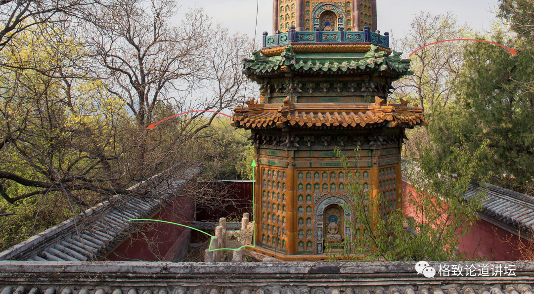 机会难得,我得跟它建立长期的友谊啊!我悄悄地跟着它,跟着跟着,却在一片树林里跟丢了。树林中突然出现一个小院,小院四周都是墙,中间有一座多宝琉璃塔。