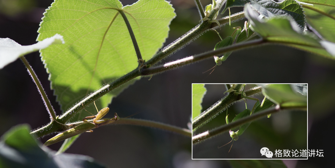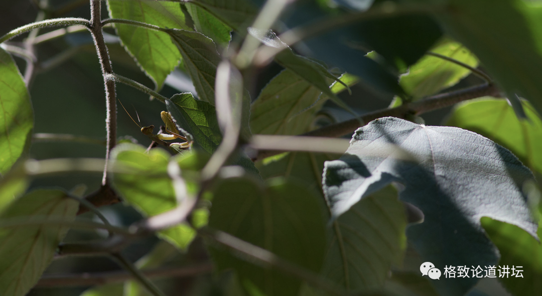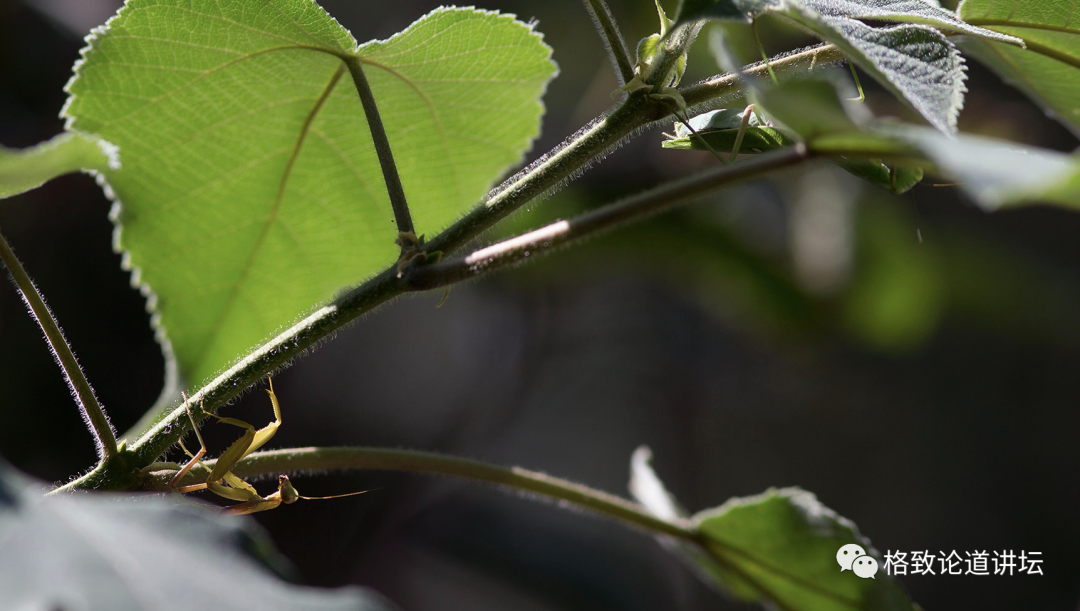 阳光透过叶子照射进来,变成了点点光斑装饰着它们的婚房,仿佛在庆祝公螳螂的成功。