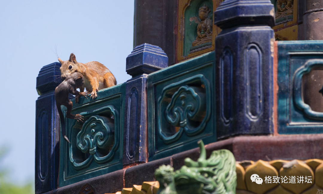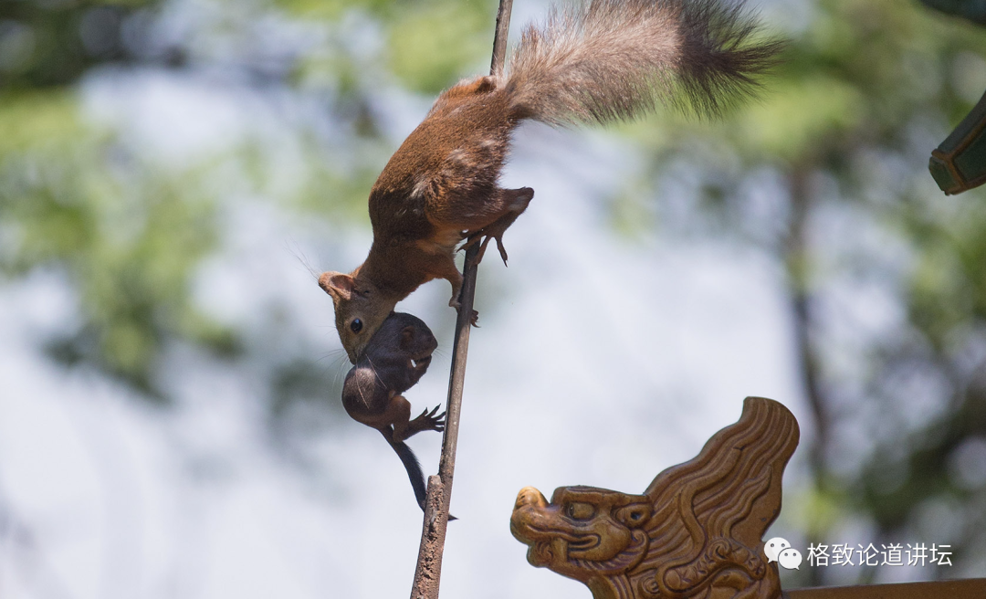 可5月中旬的天气已经很热了,尤其是中午,宝塔上面的巢被晒得很热,松鼠宝宝在巢里受得了吗?而且这是琉璃塔,松鼠宝宝在树上学走路,学爬树,爪子能钩着树干;琉璃塔多滑啊,抓哪儿哪儿滑,松鼠宝宝学不了走道,光打滑梯了。我心里又开始犯嘀咕:莱德到底有没有经验啊?